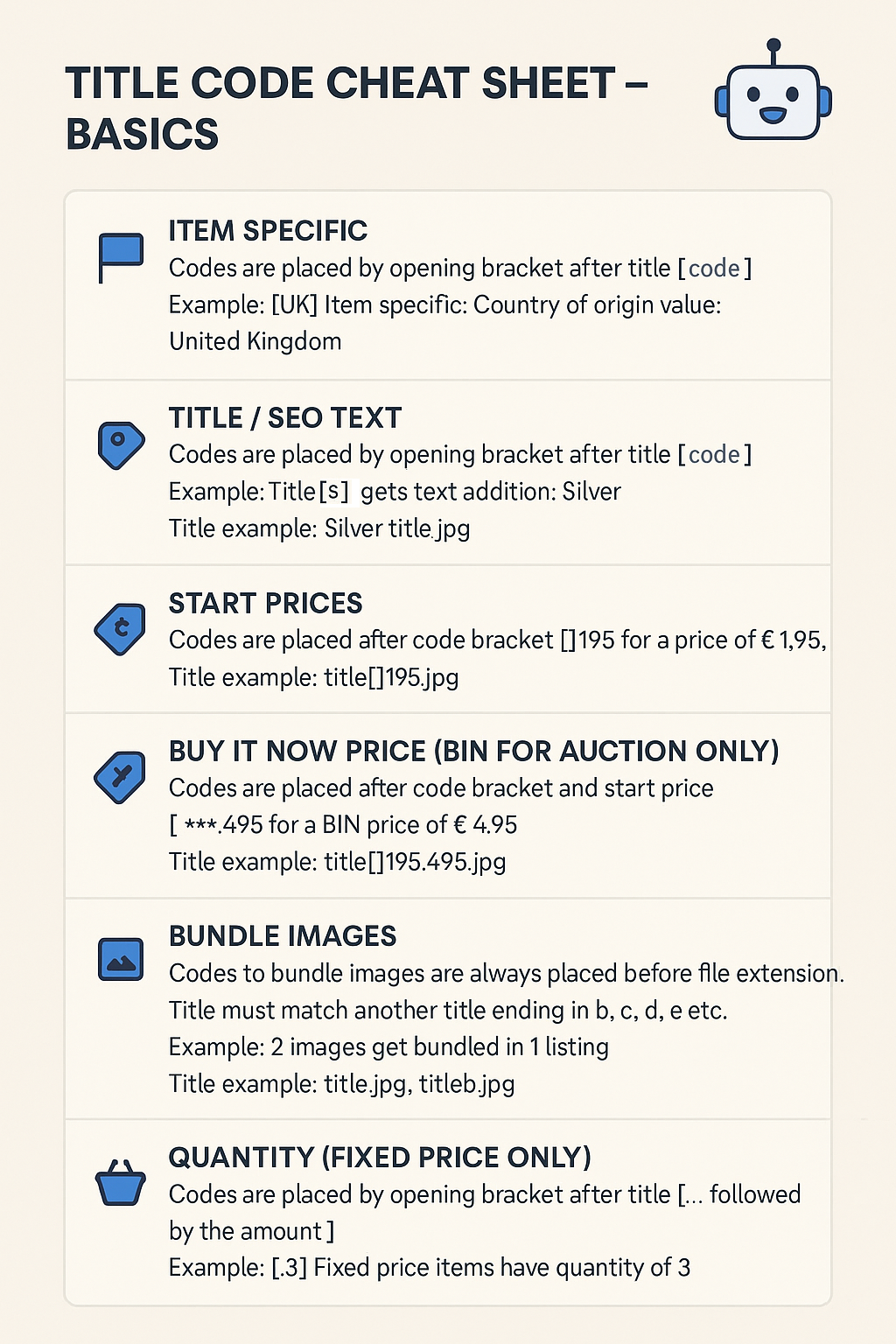 [UK].Silver, Rare or Proof without retyping them.Use these patterns together with Item specifics and the Title codes section to drive almost your entire listing from filenames alone.